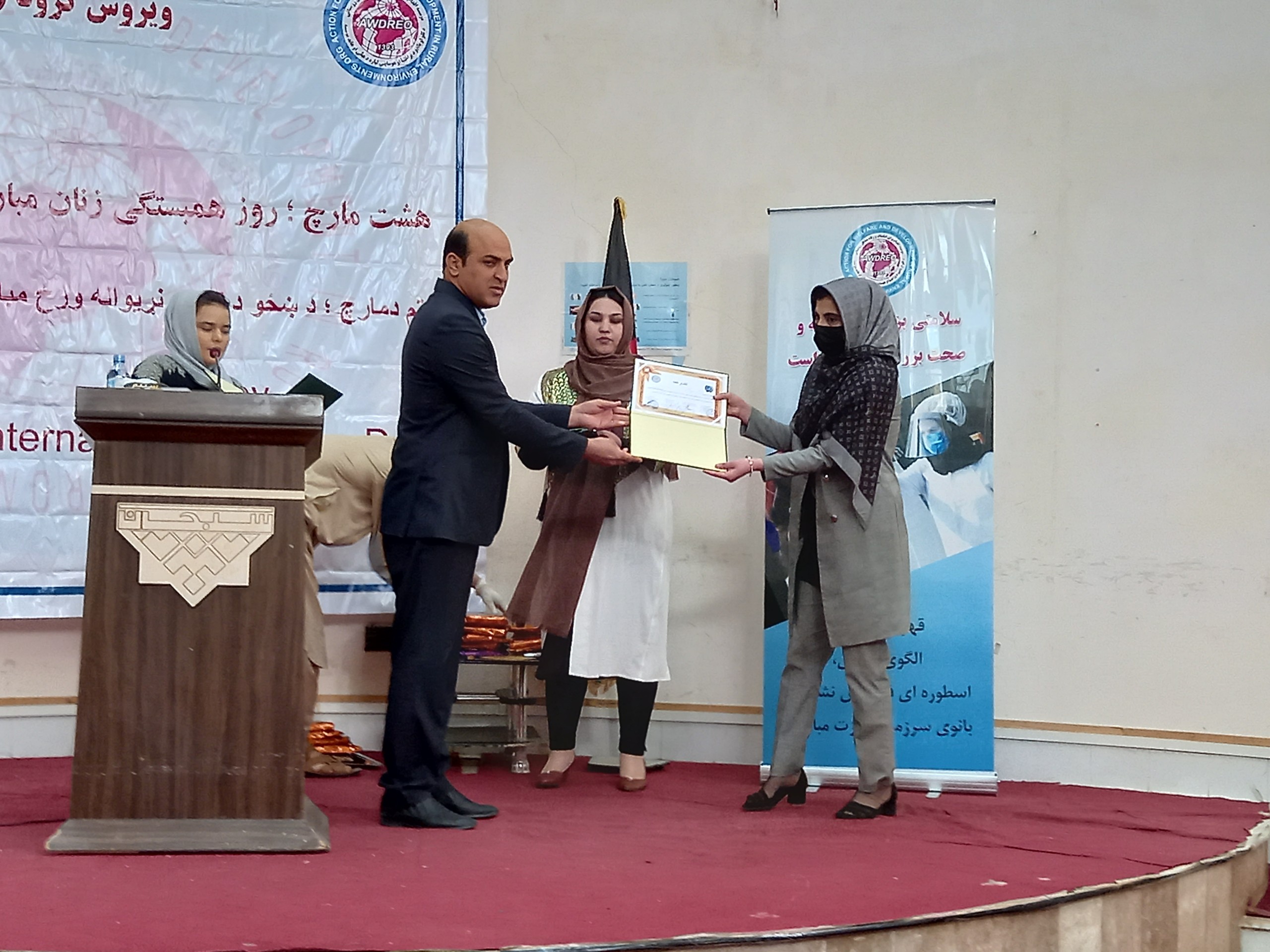 On the occasions of the international women’s Days on 8th March, AWDREO proposed the project entitled “Appreciation and gratitude ceremony from women doctors in Herat City” who were in the frontline of the COVID-19 pandemic. Because they are saving the people from mortality in the mentioned city. The project was funded by The Asia Foundation (TAF) and covered 120 doctors who are combating in the frontline of COVID-19 crisis especially women’s doctors, caregivers, midwives. During the ceremony, the doctors and midwives have been distributed Appreciation Certificate which all signed by MoPH Minister and other ranked people. The paper to encourage the women for hard working and more commitment for saving of vulnerable people.